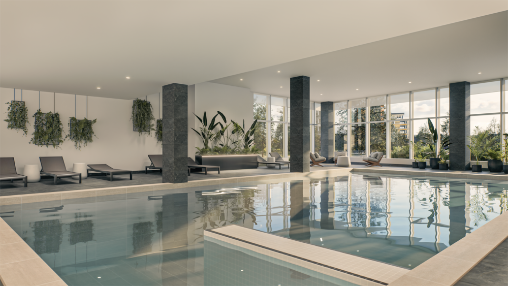 Avec des aires de vie qui inspirent et respirent, les espaces communs ont été réfléchis pour s’y réunir, socialiser, s’entraîner, se détendre et célébrer. Nos résidents auront notamment accès à un grand lobby digne d’un hôtel, un lounge avec espace cotravail, une grande piscine intérieure, une zone détente, un gym complet incluant une salle pour des cours de groupe.